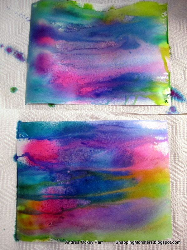 I spritzed the tags with water and sprinkled on some Brusho crystals, then spritzed them with more water.